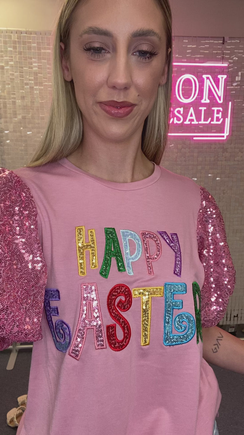 Happy Easter Sequin Bubble Sleeve Top